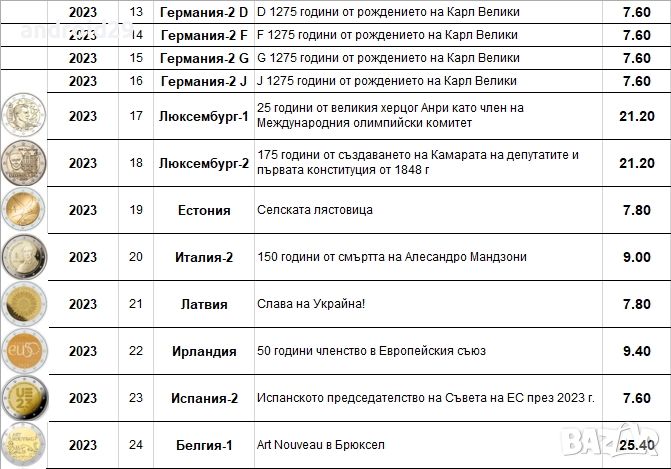 2 Евро монети (възпоменателни) емитирани 2023г