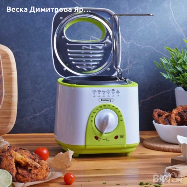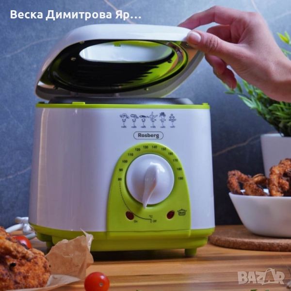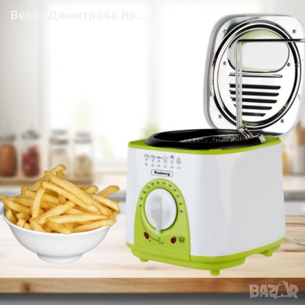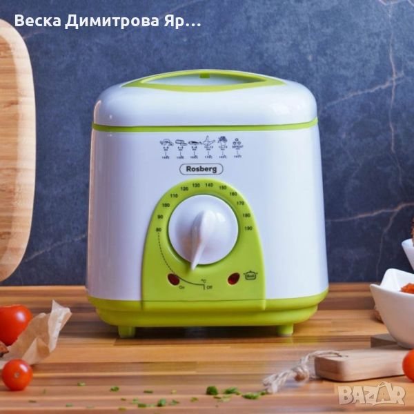 Фритюрник мини Rosberg, 1 литър, 950W, 80-190 C, Бял/зелен - 24 МЕСЕЦА ГАРАНЦИЯ → Обява 45891582