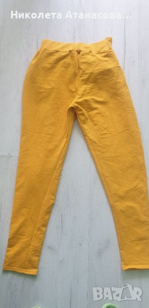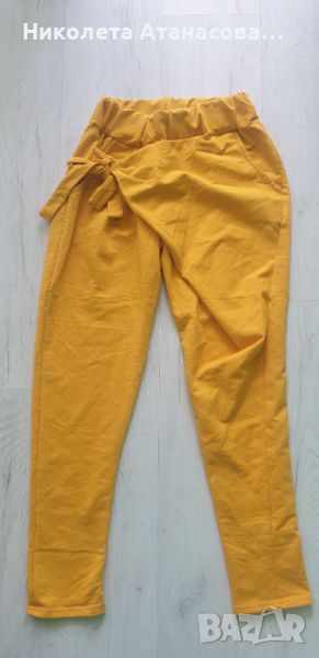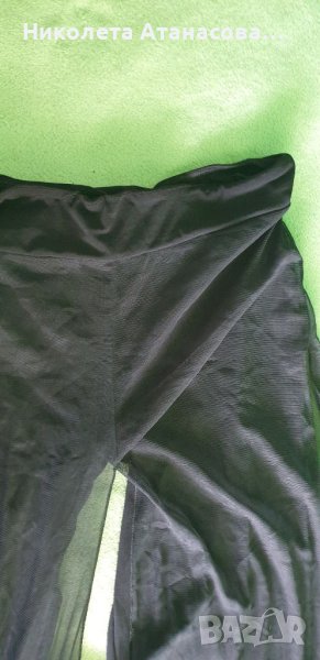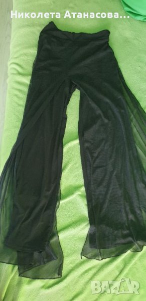 Всички са еластична материя. Снимките преди жълтияш панталон е панталон, който е пришито отгоре прозрачен тюл.