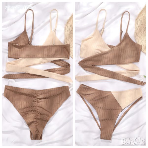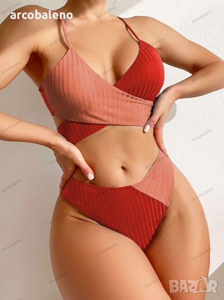 Материал: Изработени от висококачествен 82% полиестер и 18% еластан, тези бикини са еластични, удобни и бързосъхнещи, идеални за дейности на плажа. Дизайн: Отличаващ се с плътен цвят и дизайн с цветни блокове с дебела лента и кръстосани презрамки, тези бикини са стилни и модерни. Стил: Съчетайте го с голяма шапка за слънце и слънчеви очила за шикозна плажна визия или го носете под прозрачно покривало за закачливо облекло край басейна. Повод: Идеален за партита край басейна, плажни ваканции, медени месеци, круизи, срещи, летни партита, музикални фестивали и др. Препоръка: Страхотен подарък за празници, годишнини, рождени дни или специални поводи за модните жени в живота ви.