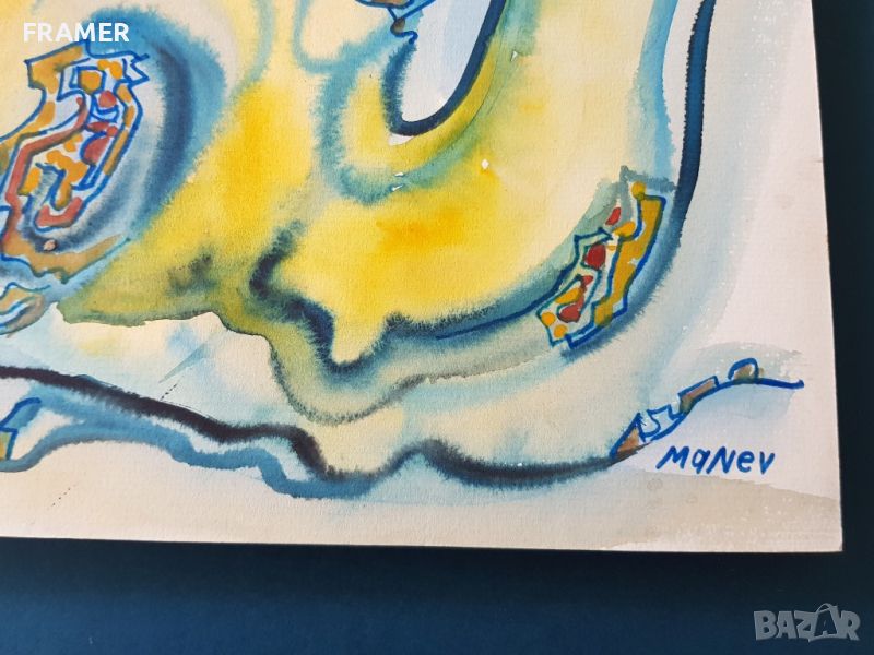 Никола Манев 1940-2018 Абстракция оригинална творба подписан акварел