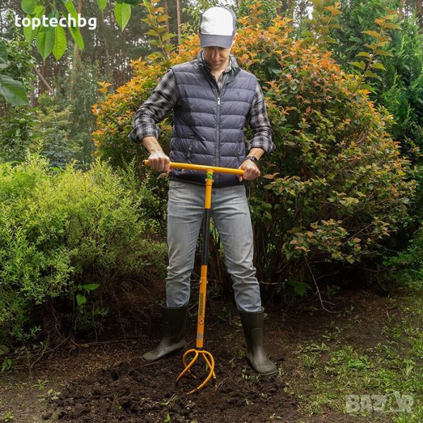 По време на използването на уреда, напрежението е равномерно разделено между ръцете, гърба, раменете и краката. Затова чувството за умора е намалено, а продуктивността увеличена. Това е основната разлика между ръчния култиватор Торнадика 4в1 и останалите градински инструменти, които нямат тези ползи.