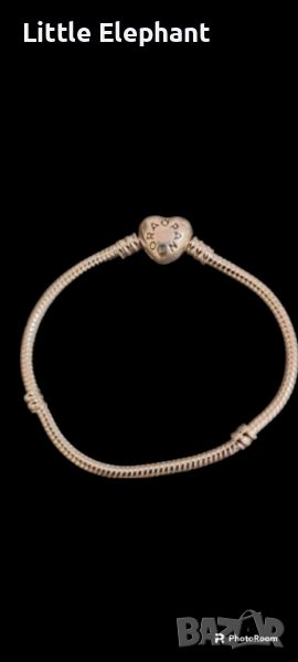 Сребърна гривна Пандора,змийска плетка със закопчалка сърце,17-18 см/нова → Обява 45898388