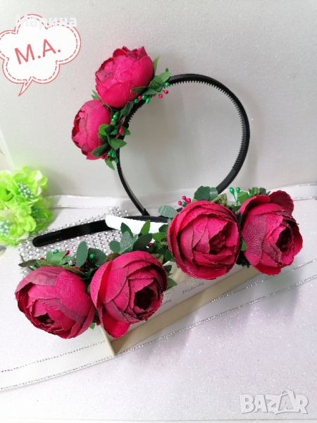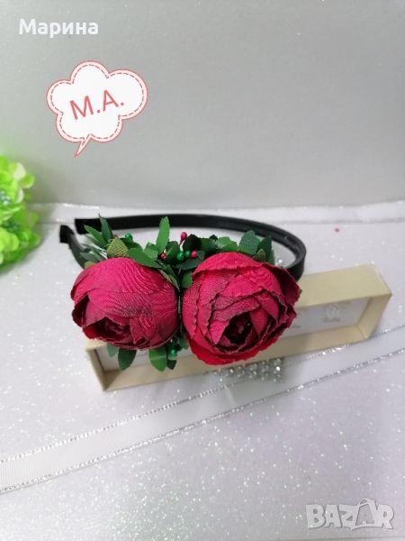 Диадема има зъбчета, удобна е за носене. Цветя с диаметър 5 см.