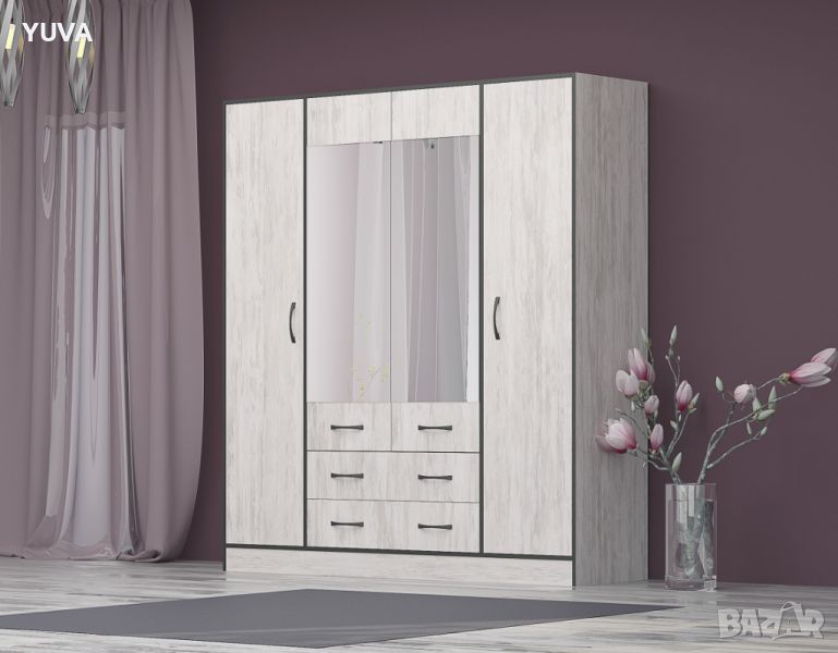 Гардероб ЛАЙТ – четирикрилен с чекмеджета и огледала