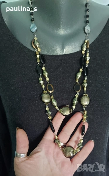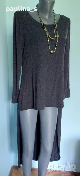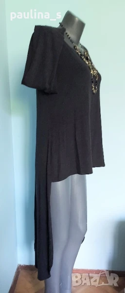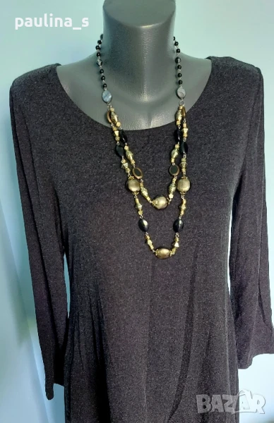 2️⃣ L / 3XL - Много еластична вталена туника с издължена задна част. Цената е крайна 19,99лв / 10 евро. Материята е мека и приятна за допир до кожата, черна със светли власинки и си мени цвета. Състав - полиамид и ликра, еластична и покрива няколко размера, посочени са. Голям размер е, една бройка, без дефекти. Герданът е на цена 9,99лв / 5 евро, не се делят!