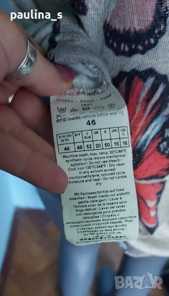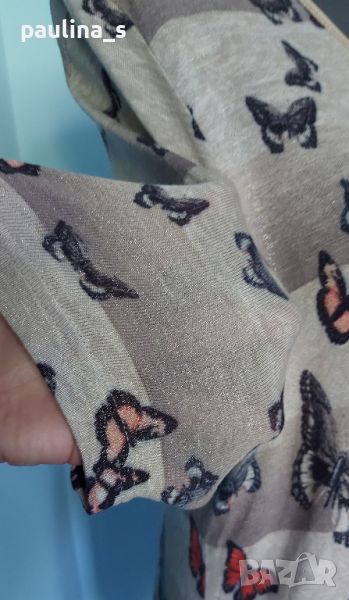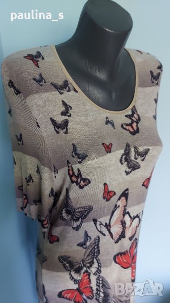 1️⃣ . XL / 3XL - "Gerry Weber". Цената е крайна 34,99лв. Разкошна туника от фино трико с блестящ акцент в пеперуден принт. Като нова, без дефекти и етикет. Материята е мека и приятна за допир до кожата, има еластичност и покрива няколко, посочени са. Нова е, без дефекти и етикет, една бройка. Прилагам и скрийншот за сверяване на цените на бранда.