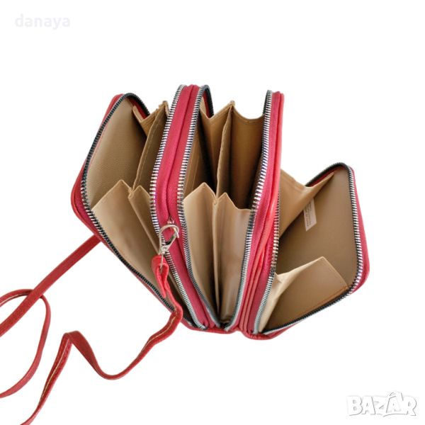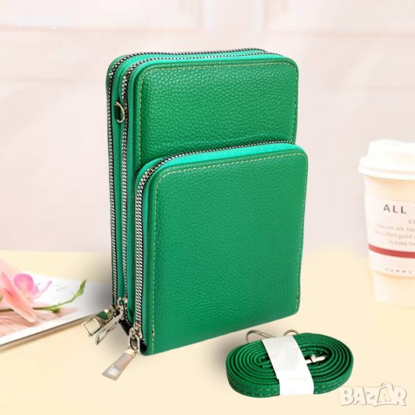 4813 Дамска кожена чантичка за през рамо, за мобилен телефон, пари и документи
