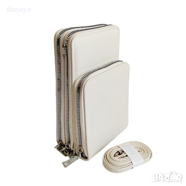 Мини вертикална дамска чанта, тип портмоне. В нея може да държиш най-необходимите неща като документи, пари, козметика и телефон. 3 основни отделения, които се затварят и отварят с цип. Тази мини раница има дълга регулируема дръжка, с която може да носите чантичката през рамо. Чудесна е за разходки, мероприятия, концерти и всякакви други ангажименти, в които искаш ръцете ти да са свободни и да се чувстваш сякаш не носиш нищо със себе си.
