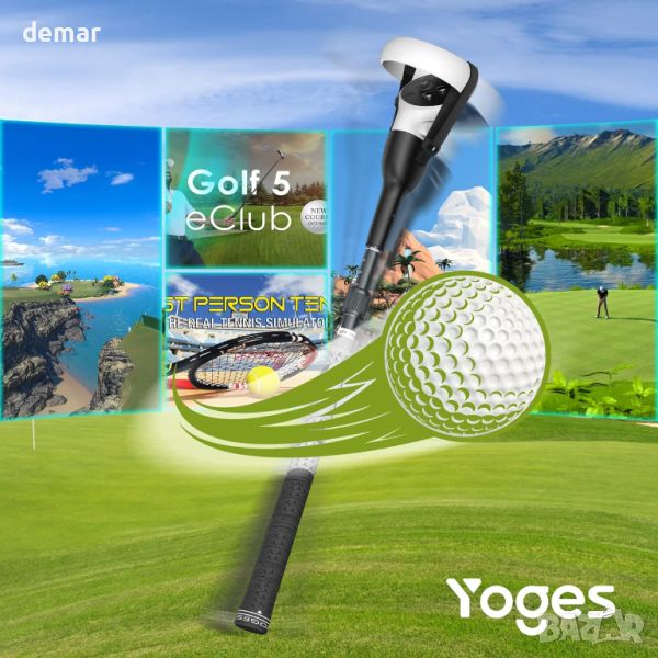 Аксесоарът YOGES VR Golf Club Handle за контролери Meta Quest 2 подобрява вашето голф изживяване във виртуална реалност, като симулира истински голф стикове. Разполага с регулируема дължина от 49 до 75 сантиметра, подходяща за всички възрасти, и мащабен дизайн за идеално персонализиране. Дръжката осигурява двойна защита с подсилена двойна велкро лента, осигуряваща здрав и стабилен захват по време на енергични замахвания. Изработен от висококачествен алуминий и силикагел, той предлага комфорт и издръжливост и е съвместим с различни VR игри като Golf +, Golf 5 eClub и Walkabout Mini Golf. Лесен за инсталиране, той е идеално допълнение към вашата VR голф настройка.