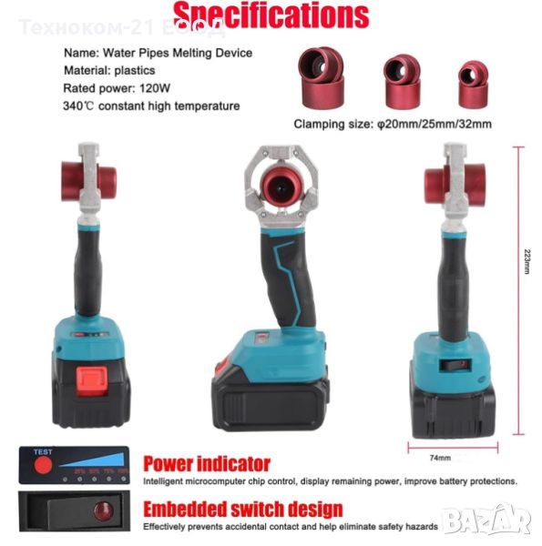 Акумулаторна лепачка за тръби с 3 глави, снимка 1 - Други инструменти - 45902133 Акумулаторна лепачка за тръби с 3 глави, снимка 2 - Други инструменти - 45902133 1/2