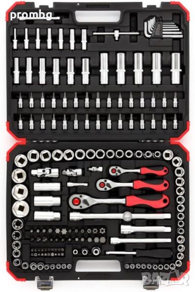 GEDORE RED комплект, 1/2"-3/8"-1/4", 172 части, внос от Германия. Материал: хром-ванадиева стомана. Включва: тресчотки, вложки, битове, шестограми, удължители, връзки и др. Тегло 10 кг. - Технически данни за 1/2":