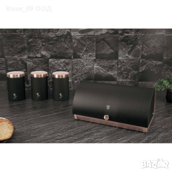 Неустоимо привличане още при първа среща с този комплект! Характерният ултра модерен дизайн на BERLINGER HAUS тук е съчетан в композиция от елегантна кутия за хляб и 3 канистера. Поставени за разкош сред интериора на кухненската зона, освен радост за окото, ще осигуряват идеална функционалност.