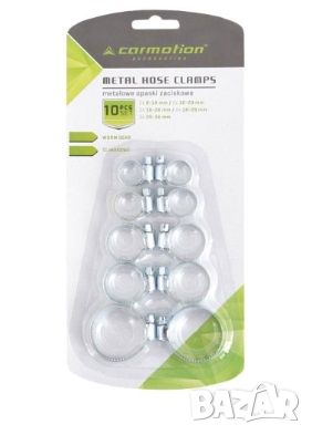 Комплект от 10 броя метални скоби подходящи за затягане на водни съединения, силиконови снадки, силиконови маркучи, маслени системи, гориво-проводи, газови инсталации, градинарството, селското стопанство и други.