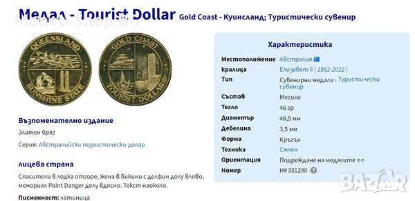 Медал - Tourist Dollar Gold Coast - Куинсланд, снимка 1 - Нумизматика и бонистика - 45903323 Медал - Tourist Dollar Gold Coast - Куинсланд, снимка 2 - Нумизматика и бонистика - 45903323 Медал - Tourist Dollar Gold Coast - Куинсланд, снимка 3 - Нумизматика и бонистика - 45903323 1/3