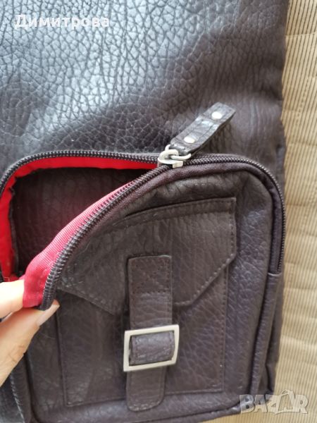 Страхотна, доста голяма чанта от кафява кожа с дълга дръжка за през рамо. Много удобна за ежедневието, също така и за студенти или за пътуване, защото наистина побира много неща. Два двойни външни джоба, вътрешен джоб с цип, още едно малко джобче, прегради за карти и химикали. Без забележки,