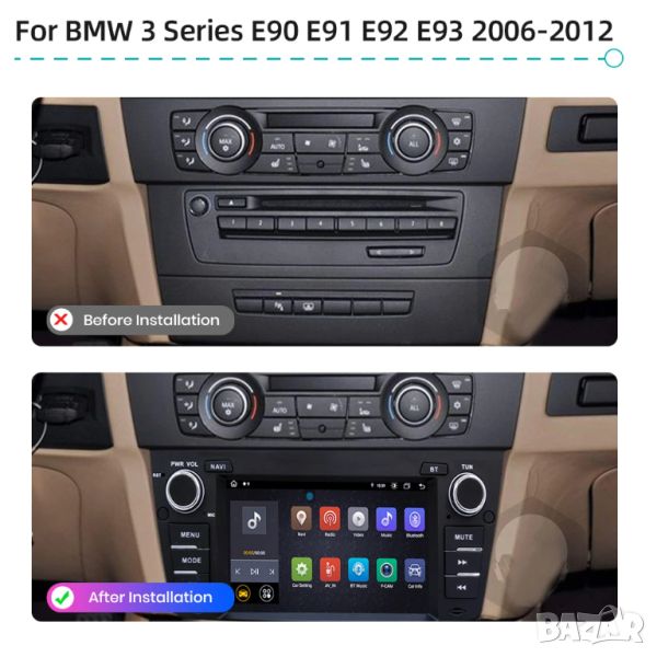 Мултимедия, Двоен дин, за BMW E90, E91, E92, E93, Андроид, Навигация, BMW 3, Android, плеър, 2 DIN
