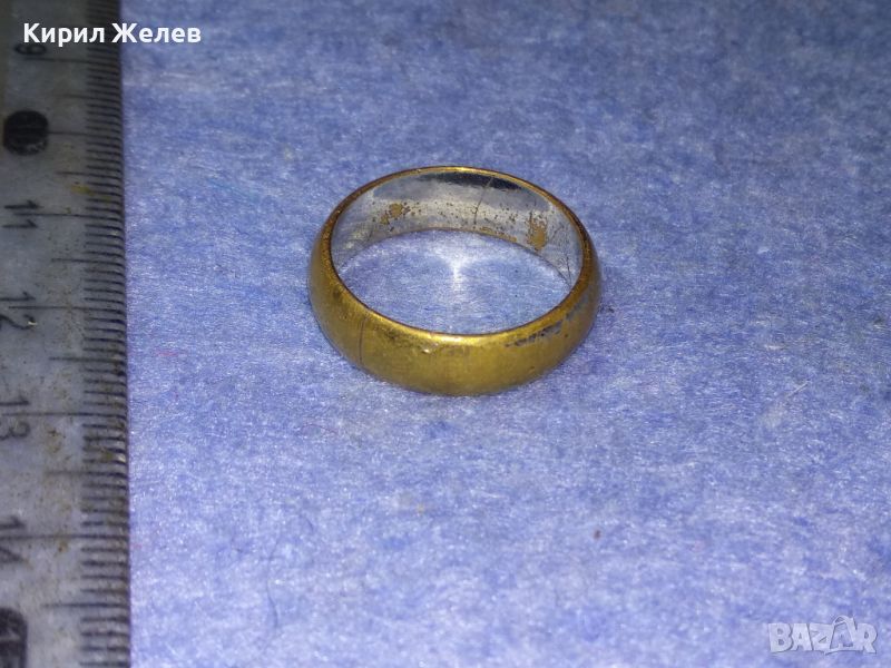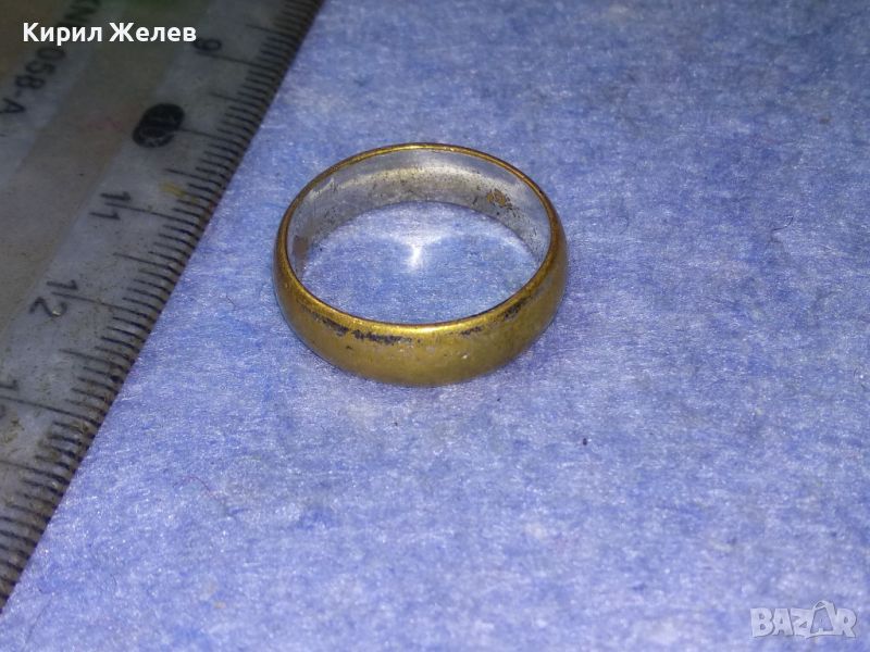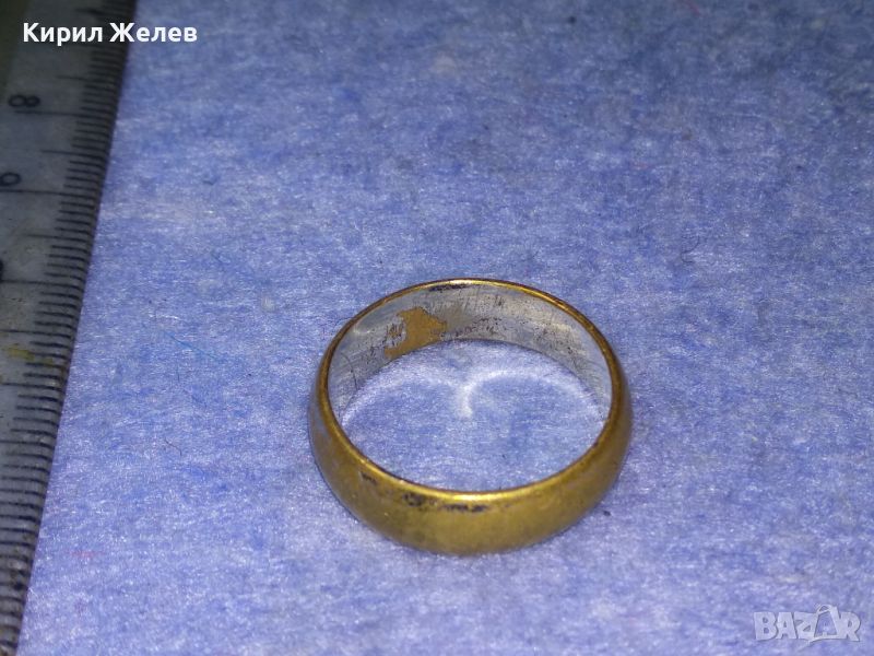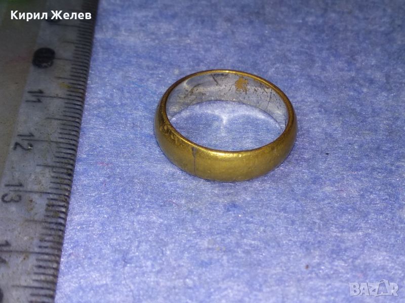 СТАРА БРОНЗОВА ХАЛКА с ОСТЪТЪЦИ от МАСИВНА ПОЗЛАТА ОТВЪТРЕ РЕТРО ПРЪСТЕН РЪЧНА РАБОТА 44826