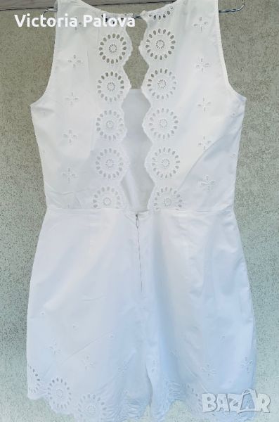 Неизползван гащеризон с открит гръб, подходящ за море и за ежедневие, много красив. ГО - 49см, цялата дължина - 87см, дължина до талия - 45см, талия - 40см.