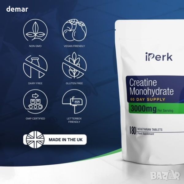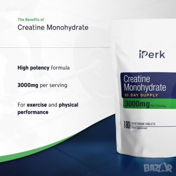 iPerk Creatine Monohydrate Таблетки - 3000 mg, 180 Таблетки (Доставка за 60 дни) - Веган