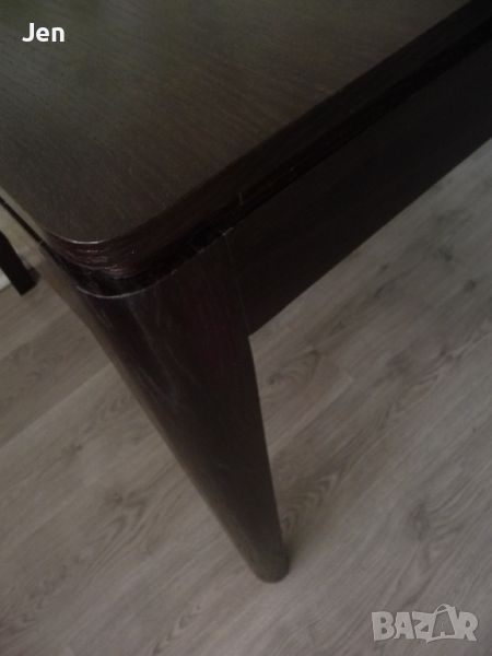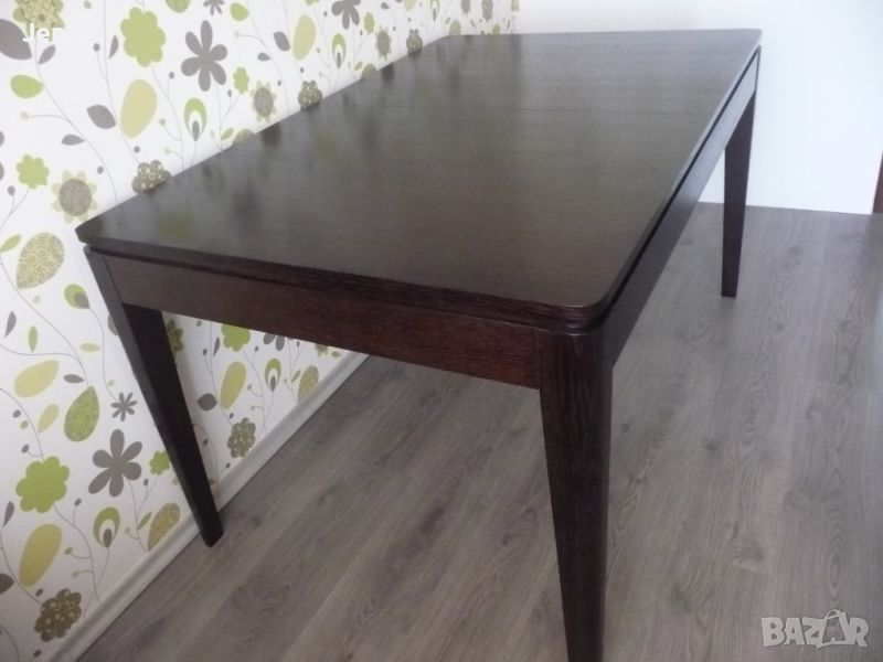 Масата е разтегателна, в отлично състояние е, купувана от Мебелна къща Ралица преди около 3 години, ползвана е много рядко. Почти без следи от употреба, една-две забележки на някой от краката на масатаКраката са от масив, а плота е от фурнир. Изключително стабилна и удобна за големи помещения, със заоблени краища на плота.Размери: 140 (+40 в разпънато положение) x 90 x76 смЦвет: тъмен орех.