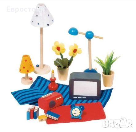 Дървени аксесоари за къща за кукли Goki, обзавеждане за куклена къща Goki - аксесоари за хол и спалня.
