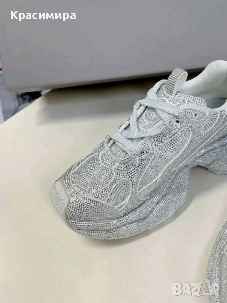 Маратонки Balenciaga бели със сребристи камъни. Висок клас, с поръчка и капаро