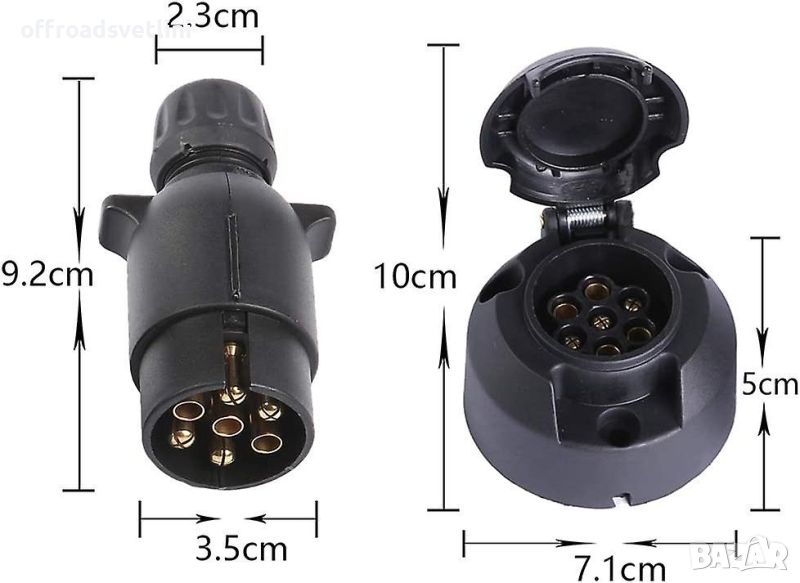 Универсален 7-пинов щепсел за каравани, ремаркета и ремаркета. Характеризира се с лесна работа и свързване, напълно разглобяема.