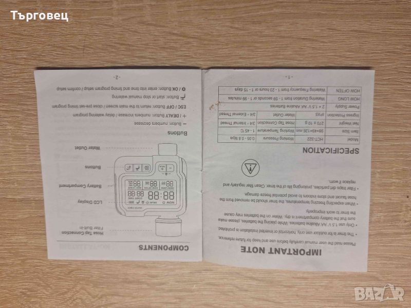 Температура на водата 0-50 градуса. Захранване 2х1,5 V AA батерии/не са включени в комплекта. /