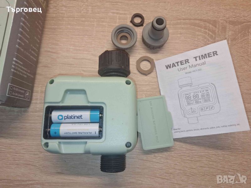 Работи с батерии 2 бр АА около 1 година , без смяна на батериите и без необходимост да се пуска захранване до тях .Не е подходящ за поливане от водоизточници без налягане.