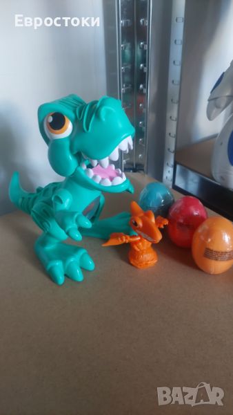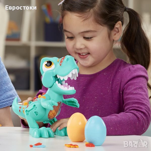Играчка Play-Doh Dino Crew Crunchin' T-Rex за деца на 3 и повече години със забавни звуци на динозаври и 3 яйца, всяко по 70гр., нетоксично.