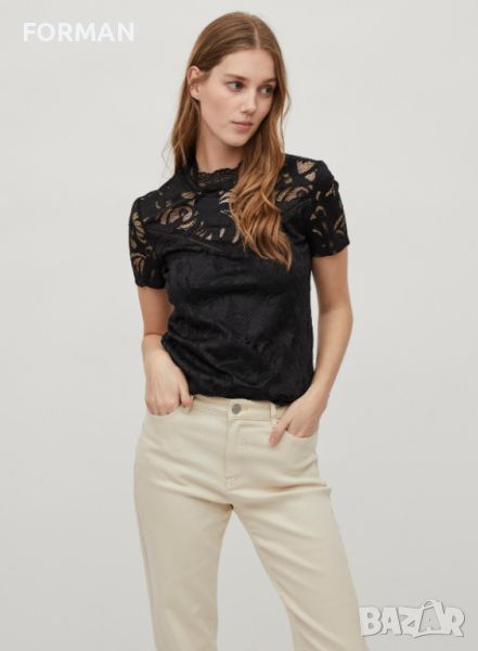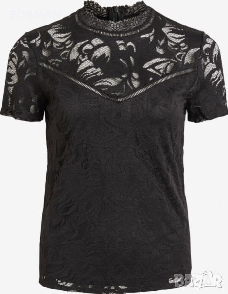 УНИКАЛНА черна дантелена блуза с високо деколте и къс ръкав → Обява 45920447