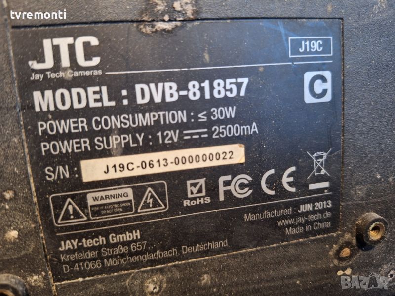 Inverter dvb-s61857ca-07 Ver:2.0 for JTC DVB-81857 19inc DISPLAY борда е гарантирано работещ Демонтиран от телевизор JTC модел DVB-81857 със счупен дисплей тествана от нашия техник Ремонт на всички марки съвременни телевизори шумен
