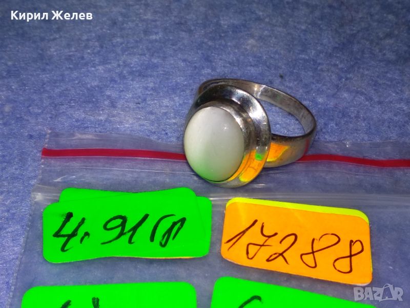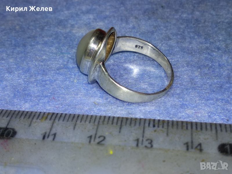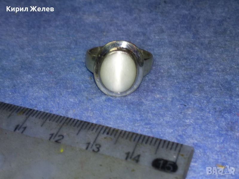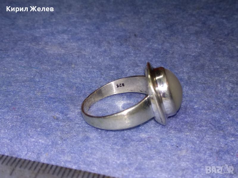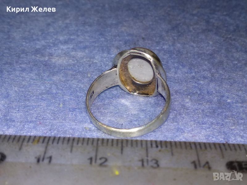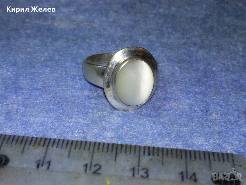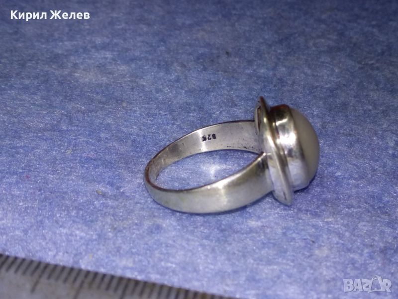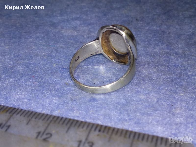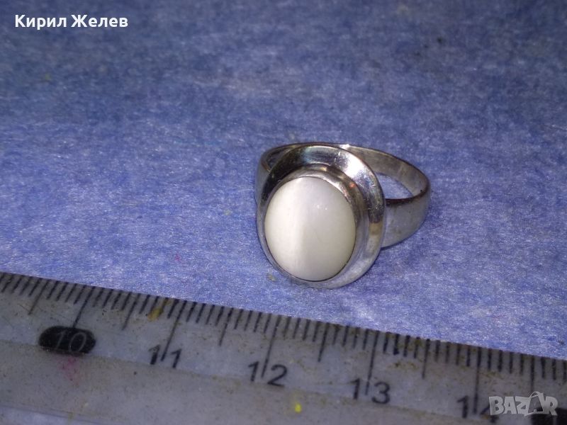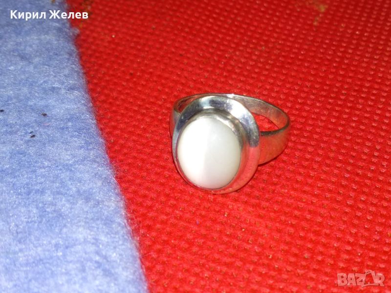 ВЕЛИКОЛЕПЕН АНГЛИЙСКИ ВИНТИДЖ АРТ СРЕБЪРЕН ПРЪСТЕН СРЕБРО 925 с РЪЧНО ШЛИФОВАН РЯДЪК БЯЛ АХАТ 17288