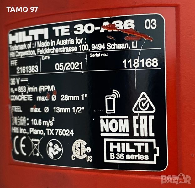 Hilti TE 30-A36 ATC/AVR - Безчетков акумулаторен перфоратор 2x36V 5.2Ah