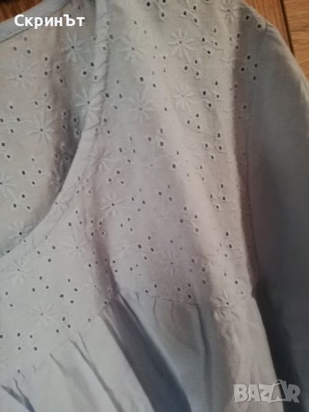 Блузата е в светлосин цвят, 100% нежен памук, бродерия в горната част, подходяща за XL/XXL, гръдна обиколка 68см. Отлично състояние, без следи от употреба!