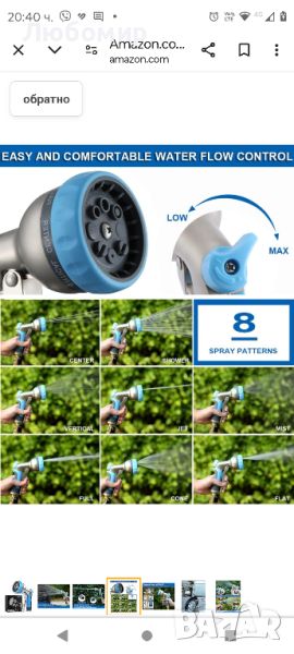 Дюза за тежък градински маркуч ESOW, 8 регулируеми шарки, метална дюза за маркуч за вода, ръчна пръскачка под високо налягане с контрол на потока, най-добра за поливане на растения и морава Изработен от 100% висококачествен прахово боядисан материал от цинкова сплав, този метален накрайник за маркуч е солиден и здрав, за да издържи на ежедневни падания и удари. ABS пластмаса, обвита с TPU покритие и устойчив на удари гумен безел циферблат може да подобри издръжливостта и гъвкавостта и да издържи на силни удари и силна сила. Здравият дизайн може да издържи на високо налягане GHT 180 - 270 psi от вход 50 - 100 psi. Дълготрайна дюза за градински маркуч е здрава, за да устои на ръжда, корозия и износване.8 режима на поливане: Завъртете диска на спринклерната глава, за да изберете водния модел, от който се нуждаете. Независимо дали имате нужда от струя под високо налягане за почистване на твърди повърхности, полезен плосък режим за измиване на колата ви, нежен душ за измиване на вашето куче или нежна мъгла за поливане на вашите градински цветя, 8 модела ви покриват. Гумената изолация на тази пръскаща дюза ви позволява да използвате топла или студена вода. Надежден и функционален инструмент, който отговаря на всички ваши ежедневни нужди от поливане.Лесно за използване копче за управление на потока: Регулирайте високото и ниското налягане на поливане лесно чрез копчето за управление на потока за всеки от 7-те модела на пръскане, които могат да отговарят на вашите различни опции за поливане, когато трябва да напоите вашата градина, тревни площи, тревни площи и цветни лехи. Също така е идеален за измиване на вашата кола, кучета и домашни любимци. Тази тежка дюза има регулиране на потока. Изберете от струя под високо налягане до мек и нежен душ, отговарящ на различните ви ежедневни нужди от почистване.