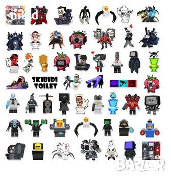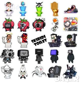 50 бр Skibidi Toilet Скибиди Тойлет vs самозалепващи лепенки стикери украса декор картонена торта → Обява 45935480