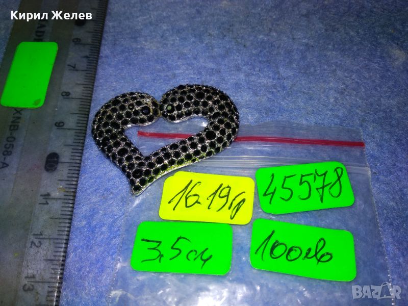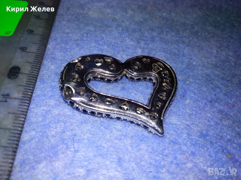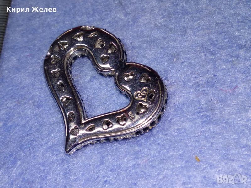 МАРКОВ СКЪПОЦЕНЕН СЪРЦЕВИДЕН СРЕБЪРЕН МЕДАЛЬОН СРЕБРО 925 CRS с ФАСЕТ МАРКАЗИТИ и БЯЛА ПОЗЛАТА 45578