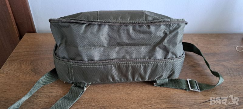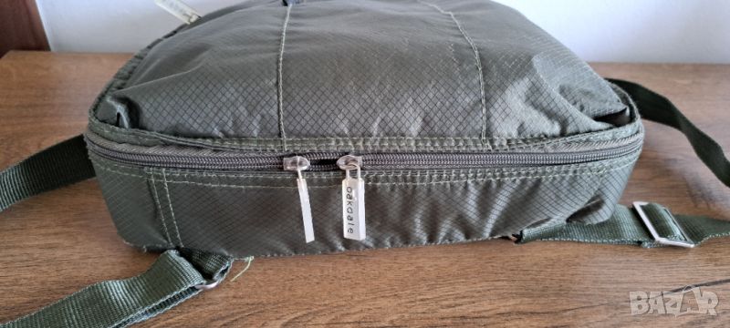 Има цип който минава през дължината на раницата и може с него да се регулира вместимостта й.