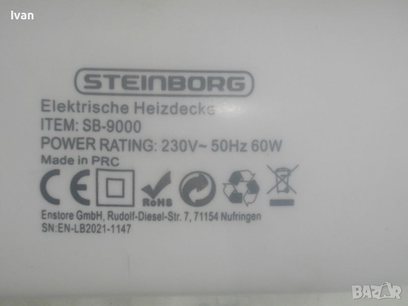 Характрестики - 230 волта, 60 вата, STEINBORG Elektriche Heisdecke ITEM SB-9000