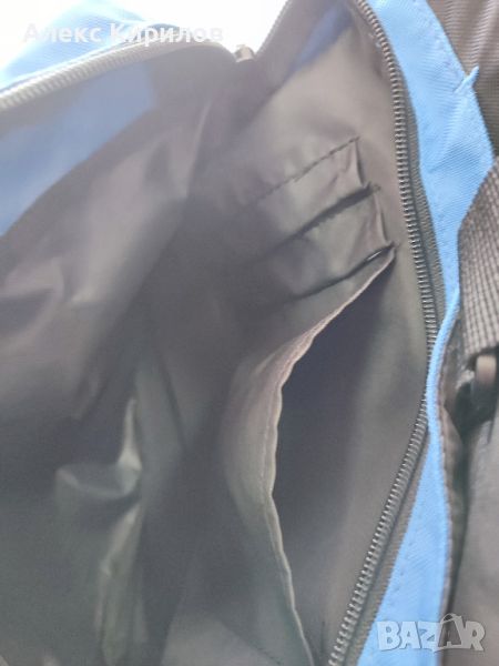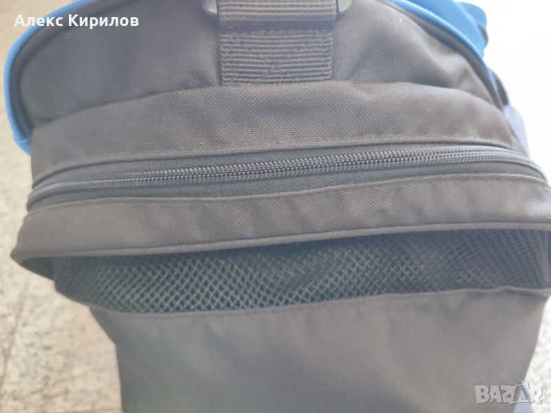 Сака е здрав,без забележки .Всички ципове работят,няма петна.Побира доста багаж.Синьо-черен е.