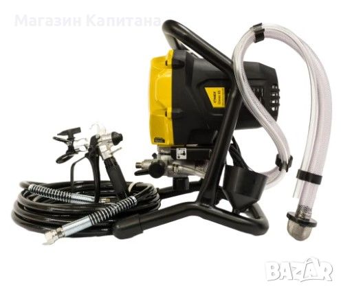 машина за боядисване, подходяща за работа с латекс, фасаген, грундове и алкидни бои. Предназначена е за натоварване до 250 – 300 кв.м/ден. Безвъздушният метод на боядисване е значително по ефективен от боядисването с четка/валяк или пистолет със сгъстен въздух. При безвъздушното боядисване се постига до 80% икономия на време и по-равномерно нанасяне.