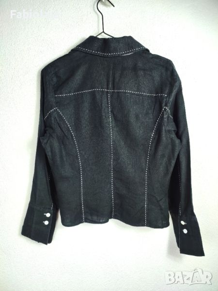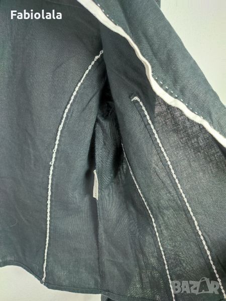 Ленено лятно яке 40 Гръдна обиколка 92 Дължина 55 Рамо 38 Ръкав 57 - подгъване 5 см. Долнище 88 Копчетата не са оригинални но лесно се свалят.