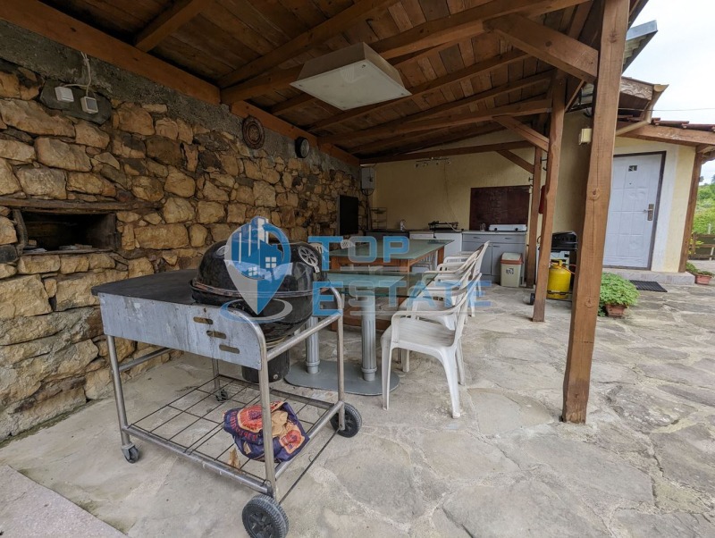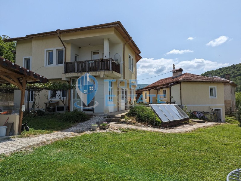 Топ Естейт Недвижими имоти има удоволствието да Ви предложи две къщи за гости в голям двор с басейн и панорамна гледка в село Войнежа, област Велико Търново. Село Войнежа се намира в полите на Стара планина - на около 450 метра надморска височина, на брега на река Белица, с достъп от 'Прохода на Републиката - Хаинбоаз'. Разположено на 4 км западно от курортното селище Вонеща вода, на 30 км южно от старопрестолния Велико Търново и на 250 км от столицата София. Селото има автобусен транспорт до областния център и съседните населени места, както и магазин, поща, читалище. Предлаганият имот се намира в близост до централната част на селото, с целогодишен достъп по асфалтов път и представлява две къщи за гости с басейн, както и трета къща на груб строеж. Основната къща е с РЗП - 210 кв. м, разпределена между два жилищни етажа, конструкцията е масивна със стоманобетонни елементи. Състои се от входно антре, просторна всекидневна с кухня, килер, мокро помещение и тоалетна от източната страна на първия етаж, като от западната страна има апартамент - всекидневна, спалня и санитарен възел, заедно с прилежащи складово помещение и мокро помещение. Вторият етаж се състои от коридор, пет спални, три бани с тоалетни и три тераси, като са обособени два самостоятелни апартамента (всеки, състоящ се от две спални, санитерен възел и тераса). Малката къща е с РЗП - 60 кв. м, едноетажна с масивна стоманобетонна конструкция. Състои се от две спални, два санитарни възела, както и навес-барбекю в непосредствена близост до нея. Къщите са построени през 2017 година, разполагат със сертификат за енергийна ефективност, висок клас PVC дограма с двоен стъклопакет, нов покрив с изолация, подови настилки - гранитогрес и ламиниран паркет, външно санирани. Отоплението е чрез централно парно на твърдо гориво с висок клас австрийски котел, както и радиатори във всички помещение, разполага с подово отопление в малката къща и на първия етаж на основната къща. Котелното помещение е разположено под малката къща. Допълнително има пет соларни панела, които отговарят за топлата вода в къщите, както и за отоплението на водата в басейна. Дворното място е с площ 6 600 кв. м, като 3 900 кв. м са в регулация, останалите - 2 700 кв. м са земеделска земя. От къщите се открива красива панорама към цялата местност и Стара планина. В двора има голям басейн с размери 8х4 метра и дълбочина 1.20 метра, до него има детски басейн - 2х2 метра с дълбочина 60 см, както и джакузи. Допълнително има голям навес с барбекю, оформен като лятна градина, намиращ се до басейна. Къщите са напълно обзаведени и оборудвани и готови за експлоатация след закупуването им. Могат да се използват, като къщи за гости, като разполагат с общ капацитет от 20 места за спане. Този имот може да бъде използван и като място за целогодишно живеене и отдих, далеч от градския шум и забързано ежедневие в полите на Стара планина и на крачка разстояние от големия град. Номер на оферта: 2540. We speak English and German.