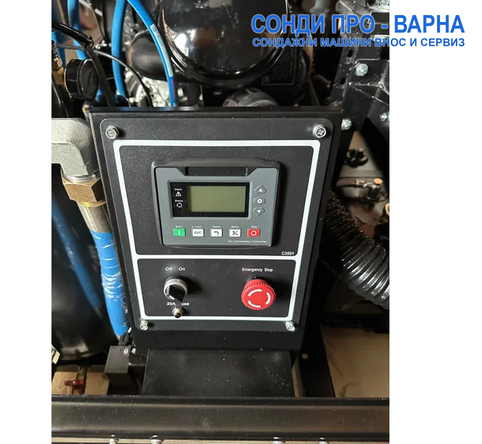Сондажна машина Car-250EC2Х2, моля заредете видеото на адрес: youtu. be/Es8Vm8M9t40 - Други модели сондажни машини предлагани от Сонди Про-Варна, може да видите в страницата ни в mobile. bg: tampers. mobile. bg - Друго предлагано ново индустриално оборудване внос от Европа предлагано от РЕМТЕХСТРОЙ ГРУП може да видите на адрес: www. remtechstroy. eu/bg . Мобилен винтов компресор 30HP/3. 5CN2 e с дизелов двигател QC385q с мощност 35 к. с. С въздушен поток 3500 л/мин и работно налягане 7 бара. Компресора е изключително безшумен и отговаря на най-строгите екологични стандарти по целия свят и в Европа. Има компактен размер за лесно боравене. Оборудван е с теглич. . ХАРАКТЕРИСТИКА: ЗАДВИЖВАНЕ: ДИЗЕЛОВ 30hp (23KW) с електрически стартер, водно охлаждане ПРОИЗВОДИТЕЛНОСТ: 3, 5 m3/min (Flow rate: 125 cfm) РАБОТНО НАЛЯГАНЕ: 7 bar ШАСИ: 2 КОЛЕСНО ТЕГЛО: 650 КГ . ГАБАРИТ: Дължина=2800 х Широчина=1530 х Височина=1260 ММ ВМЕСТИМОСТ МАСЛО КОМПРЕСОР: 18 Литра ОХЛАЖДАНЕ ДИЗИЛОВ ДВИГАТЕЛ: ВОДНО БРОЙ ЦИЛИНДРИ ДИЗИЛОВ ДВИГАТЕЛ: 3 БРОЯ ДИАМЕТЪР/ХОД БУТАЛО: 85/90 ММ ОБОРОТИ: 2100-2900 ОБР/МИН ВМЕСТИМОСТ НА РЕЗЕРВОРА: 60 Литра . БАЗОВИЯТ КОМПЛЕКТ КЪМ КОМПРЕСОРА: - 1 К-Т ИСТРУМЕНТИ, ЧАСТИ И ФИЛТРИ 4 К-Т - 1 Б-Р РЪКОВОДСТВО ЗА ЕКСПЛОТАЦИЯ