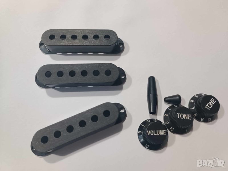 Това е черен комплект за Strat с 3 броя матови капачки за синглите,всяка от тях с размери 50 мм