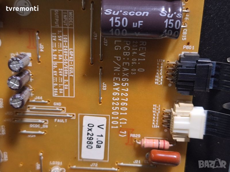 power board EAX65727601 (1.7) EAY63250101 LGP42-14UL6 ,for LG 42UB820V 42inc DISPLAY LC420EQE-PGM1 борда е гарантирано работещ Демонтиран от телевизор LG модел 42UB820V със счупен дисплей LC420EQE-PGM1 тествана от нашия техник Ремонт на всички марки съвременни телевизори шумен