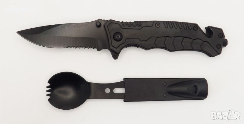 Многофункционален нож със заключващ механизъм, с щип за чупене на стъкло и резачка за корда и въже