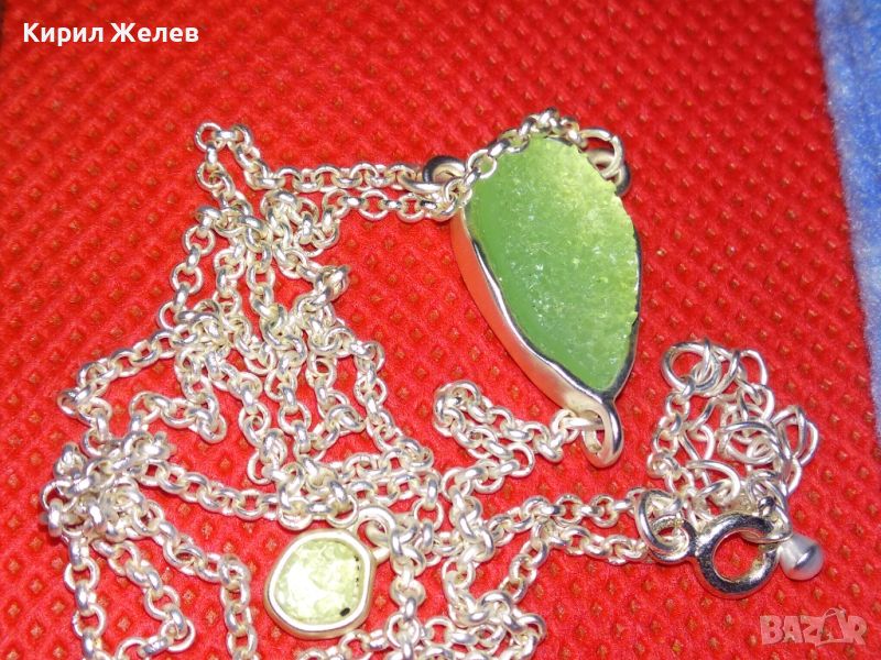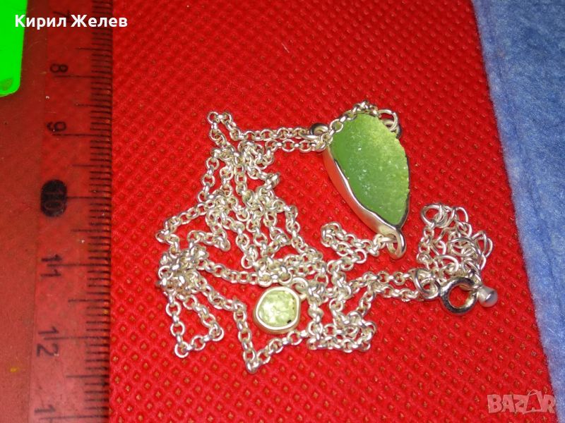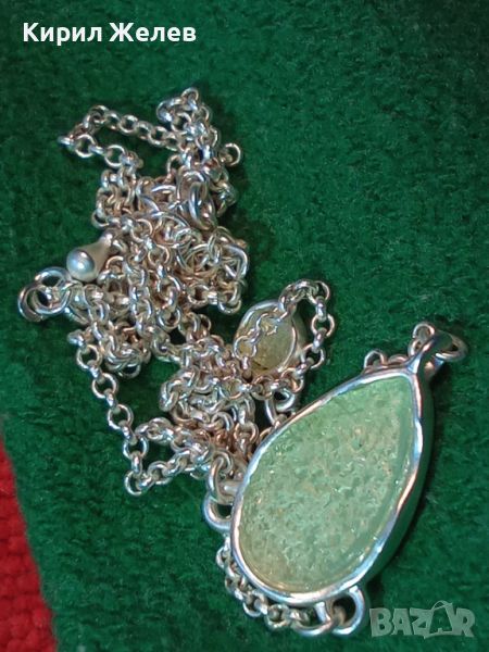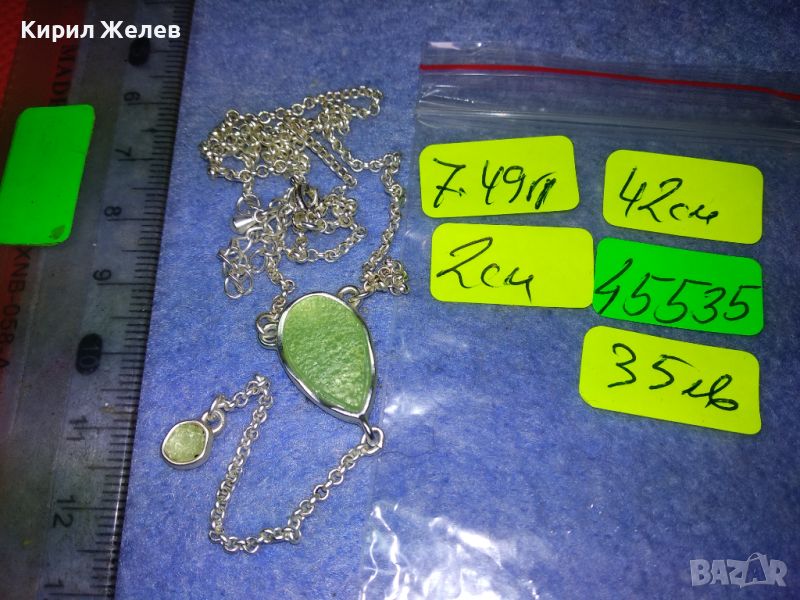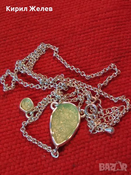 НЕЖНО СКЪПОЦЕННО СРЕБЪРНО КОЛИЕ СРЕБРО 925 ПРОБА с НАТУРАЛЕН МИНЕРАЛ МАЙСТОРСКА ИЗРАБОТКА 45535